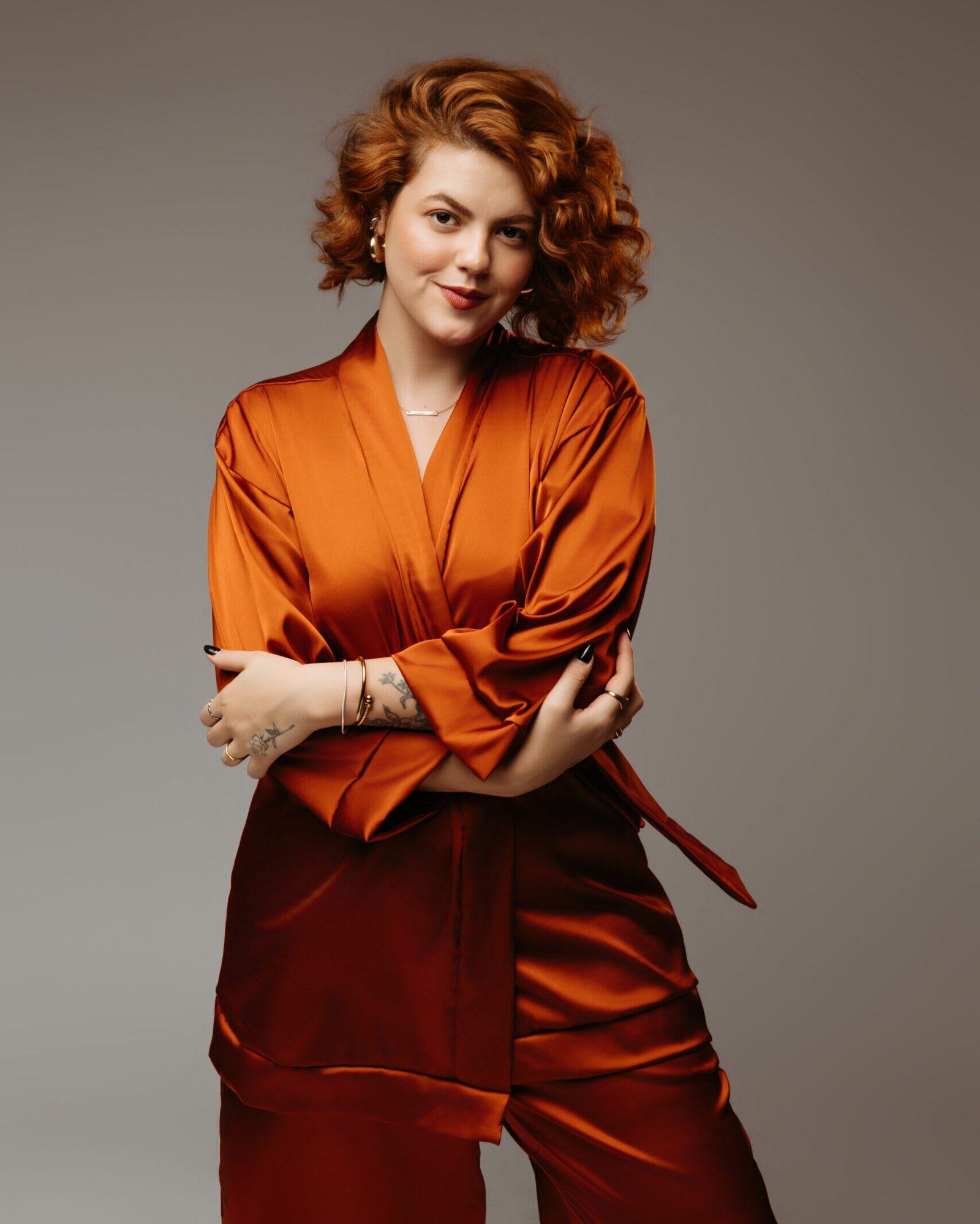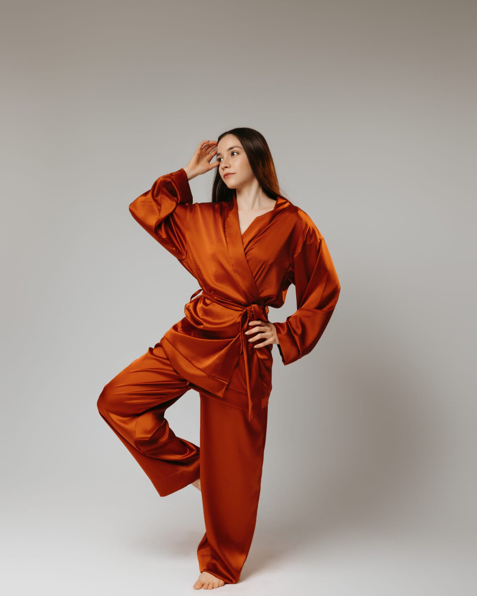 primeira modelo usa robe M e calça G (busto 86cm, cintura: 76cm, quadril: 111cm, altura, 1,73cm);