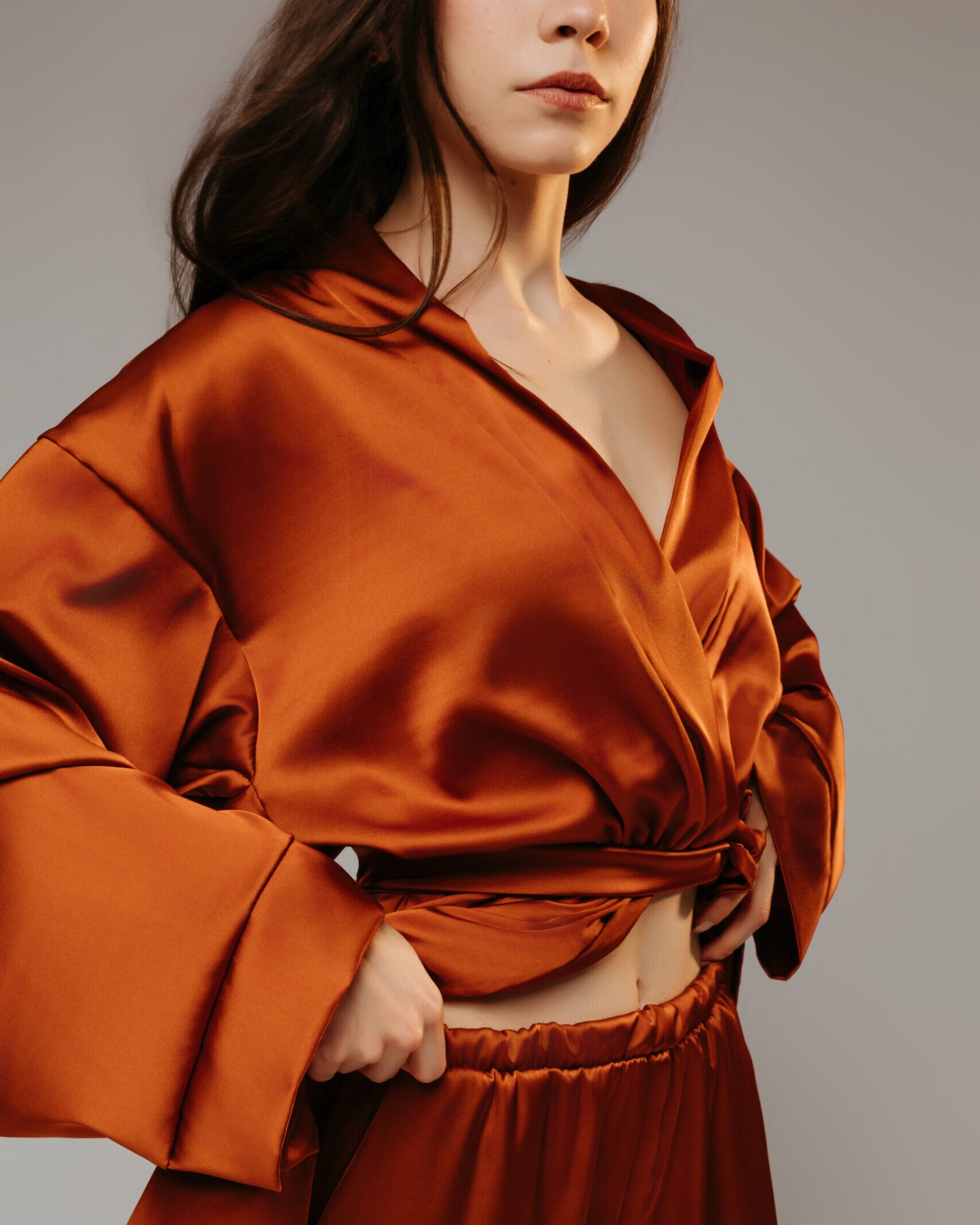 Calça acetinada Chérie cobre