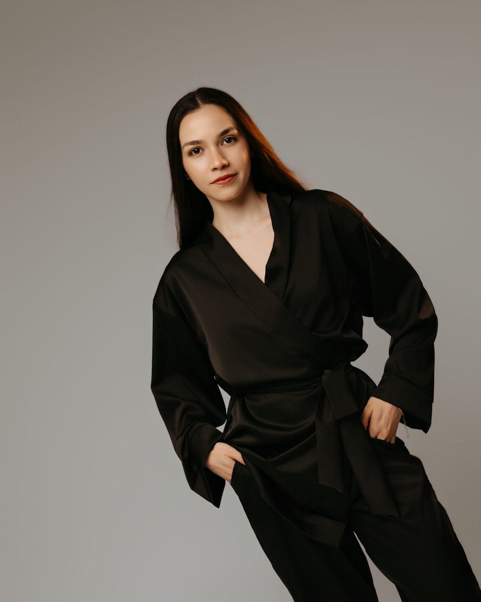 Robe/ kimono acetinado Chérie preto